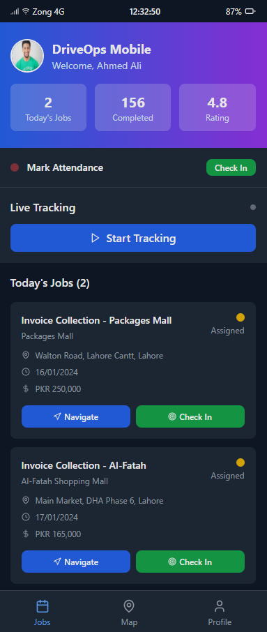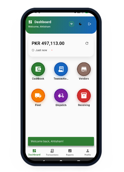 A Flutter-based mobile app with a Node.js API backend and reporting console was designed and delivered. The system supports offline capture of dispatch data, wallet transactions, and penalties, automatically syncing to the cloud when connectivity is available. Role-based access ensures appropriate permissions for field staff, supervisors, and finance teams.