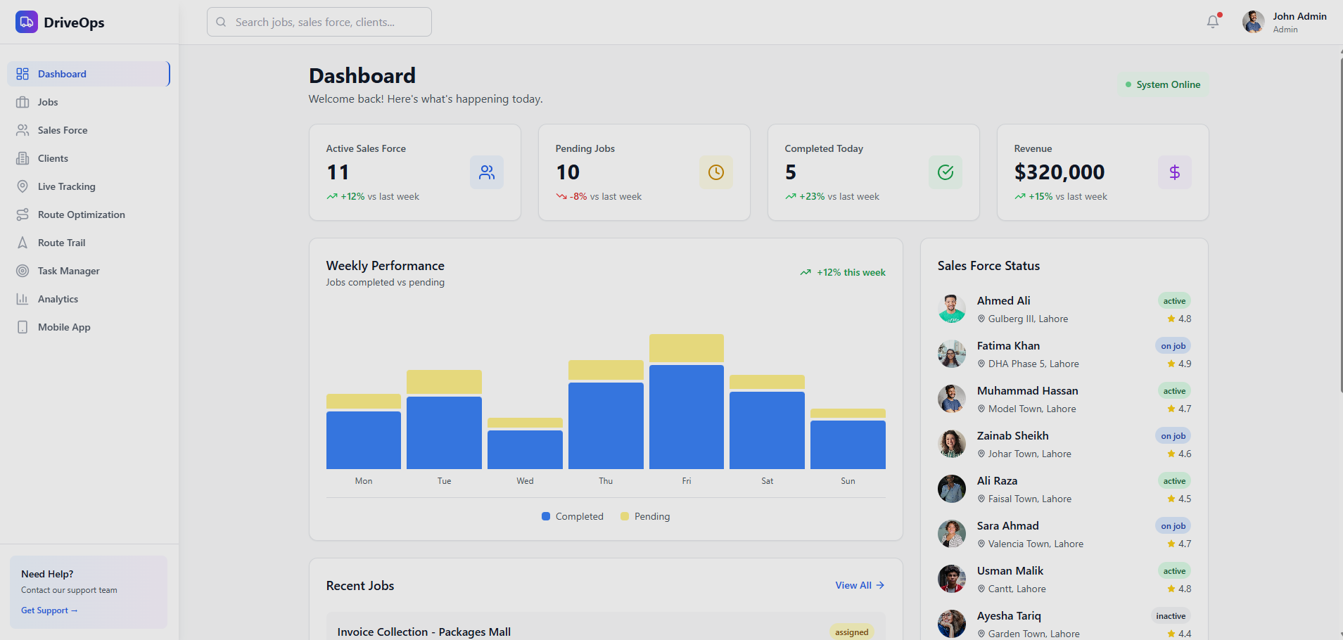 A logistics company needed real-time visibility into their fleet operations, driver locations, and route efficiency. They lacked tools to monitor driver behavior, optimize routes, and ensure compliance with delivery schedules.